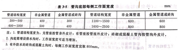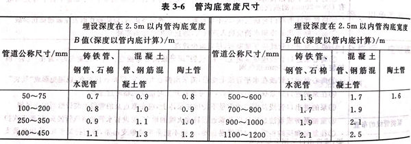溝(gou)槽(cao)底(di)(di)邊(bian)的(de)寬度應根據方便(bian)施工和減少工作量的(de)原則確定(ding)。當(dang)施工開挖困難時,可適當(dang)減小(xiao),但考慮(lv)到溝(gou)底(di)(di)管道施工操作的(de)需要(yao),溝(gou)底(di)(di)管子每側的(de)寬度不應小(xiao)于(yu)(yu)表3-5的(de)要(yao)求,且溝(gou)底(di)(di)最(zui)小(xiao)總寬度不應小(xiao)于(yu)(yu)表3-6的(de)規(gui)定(ding)。