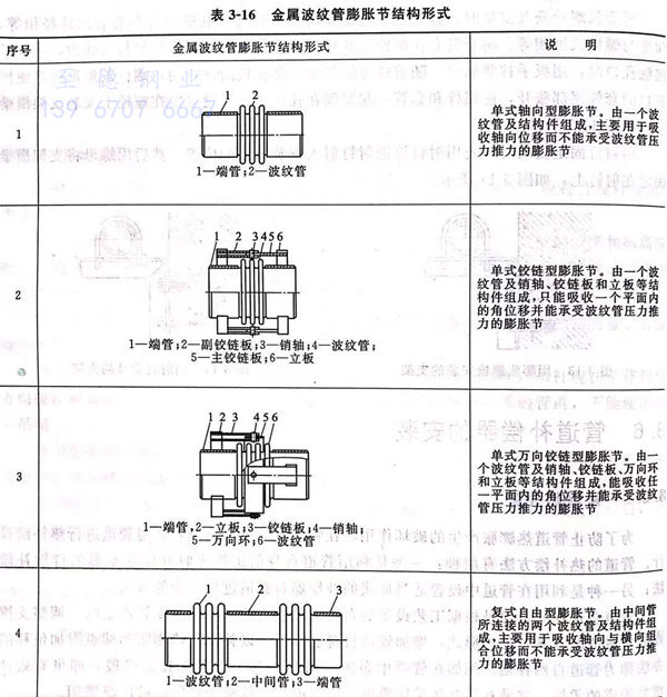 根據(ju)金屬波紋(wen)管膨脹(zhang)節的結構(gou)和(he)功能(neng),其基(ji)本形式可(ke)分十大類。如(ru)表3-16所示。