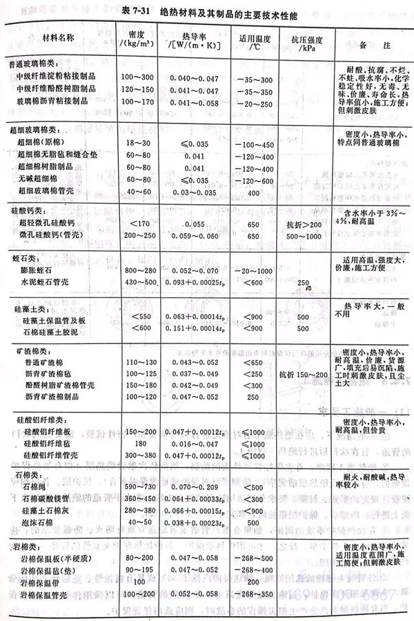 常(chang)用絕熱(re)材(cai)料及其制品見(jian)表7-31.絕熱(re)層的厚度可根(gen)據(ju)所選絕熱(re)材(cai)料通過(guo)傳(chuan)熱(re)計算求得。