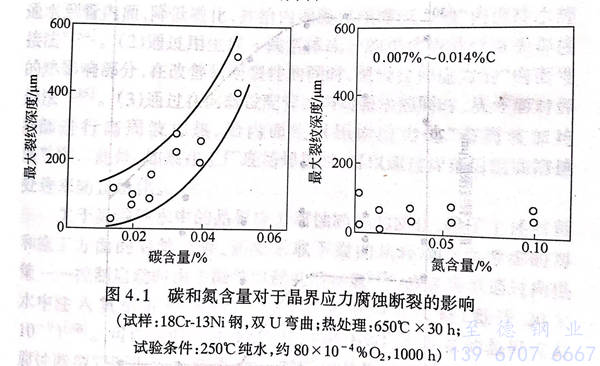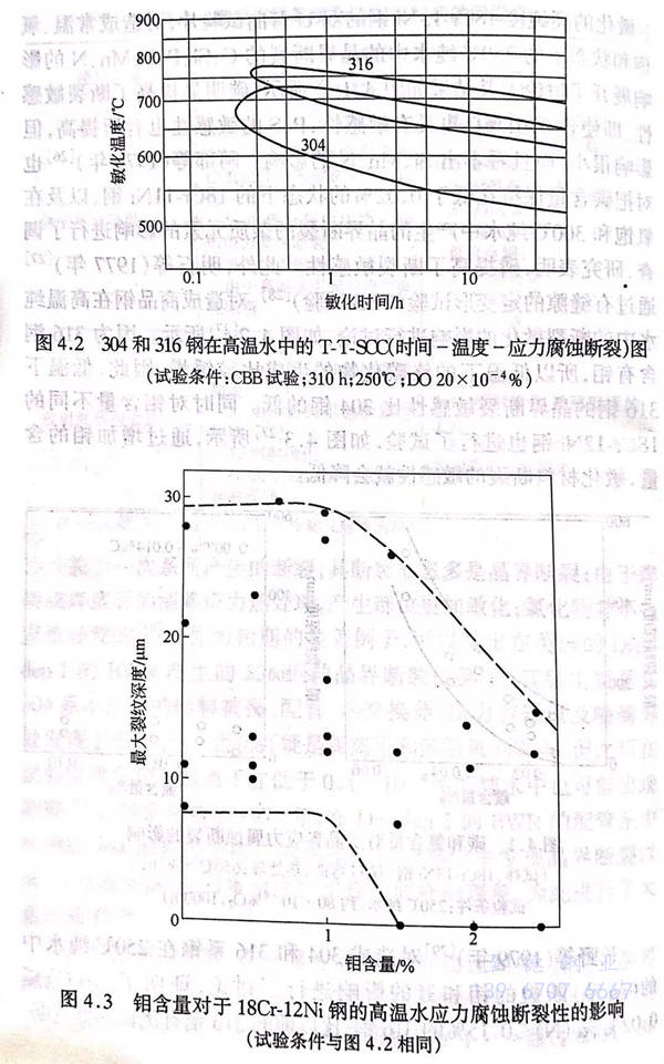 因為擔心在(zai)化(hua)學工(gong)廠等液體(ti)環(huan)境下(xia),奧氏體(ti)系不銹鋼產生應力腐蝕斷(duan)裂的(de)(de)現(xian)象,所(suo)(suo)以進行(xing)了(le)在(zai)防(fang)止斷(duan)裂發生的(de)(de)環(huan)境條件下(xia)的(de)(de)研(yan)究(1965~1970年),特別(bie)明(ming)確了(le)微量(liang)的(de)(de)氯離(li)子(zi)、溶解在(zai)水中的(de)(de)氧、溫(wen)度的(de)(de)影(ying)響,特別(bie)是(shi)合(he)金(jin)元素所(suo)(suo)產生的(de)(de)影(ying)響(關于在(zai)含有氯離(li)子(zi)的(de)(de)高溫(wen)水中的(de)(de)應力腐蝕斷(duan)裂,在(zai)第7.4節中有所(suo)(suo)闡述)。