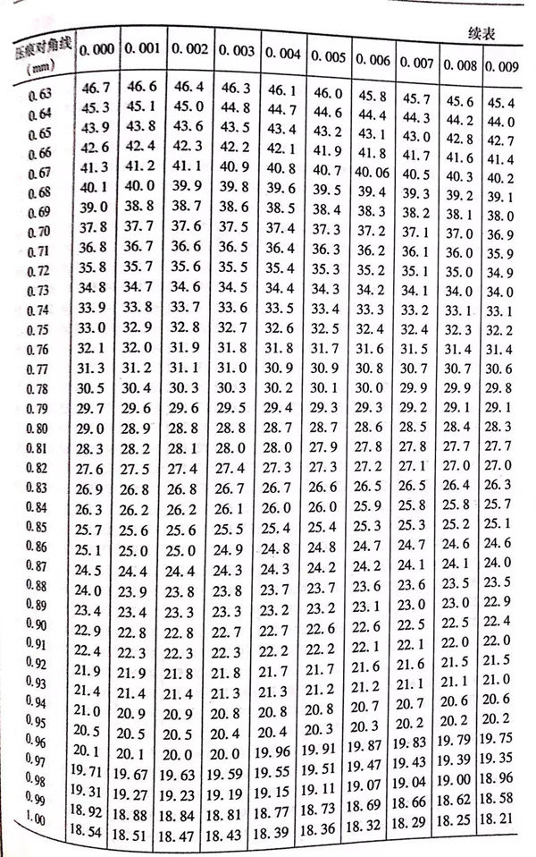 2. 按改(gai)變后的對角線數值(zhi)查表(biao)9-3中標示的硬度(du)值(zhi)。