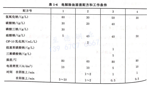 陰陽(yang)極電解除(chu)油的比(bi)較見(jian)表 1-5。