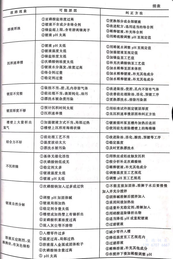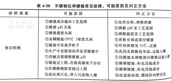 不銹鋼化學鍍(du)鎳常(chang)見故障(zhang)、可能原(yuan)因(yin)及糾正方法見表(biao)4-38.