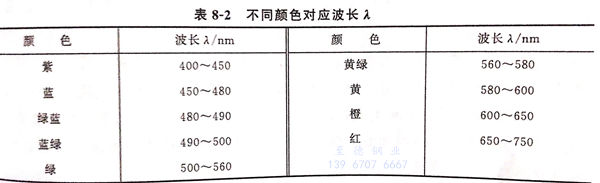 通(tong)過光干涉(she)相互加強(qiang)(qiang),對應于該波(bo)長(chang)光的色(se)(se)調(diao)被加強(qiang)(qiang)而(er)顯示出符合于該波(bo)長(chang)的色(se)(se)彩,不同顏(yan)色(se)(se)對應波(bo)長(chang)入見(jian)表8-2。