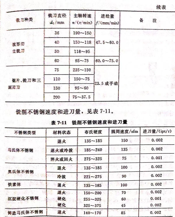 高速(su)鋼銑刀的切削用(yong)量(liang)見表(biao)7-10。