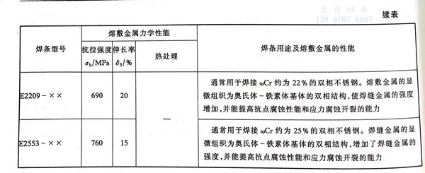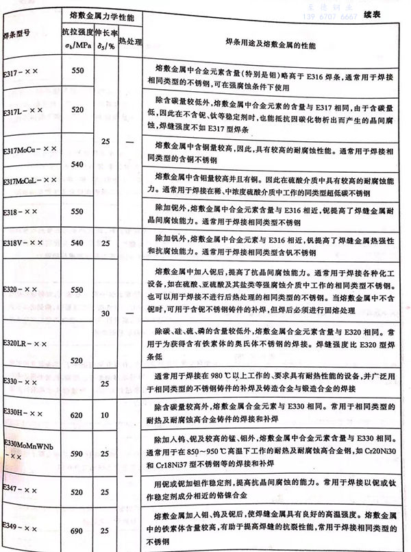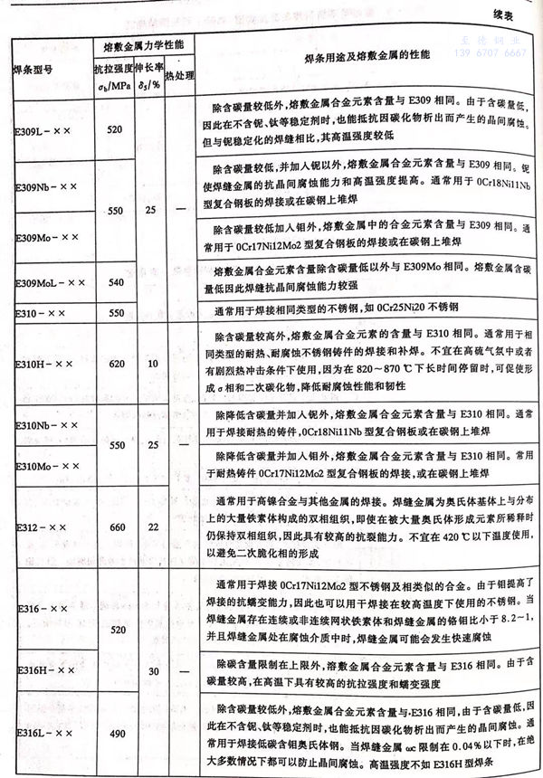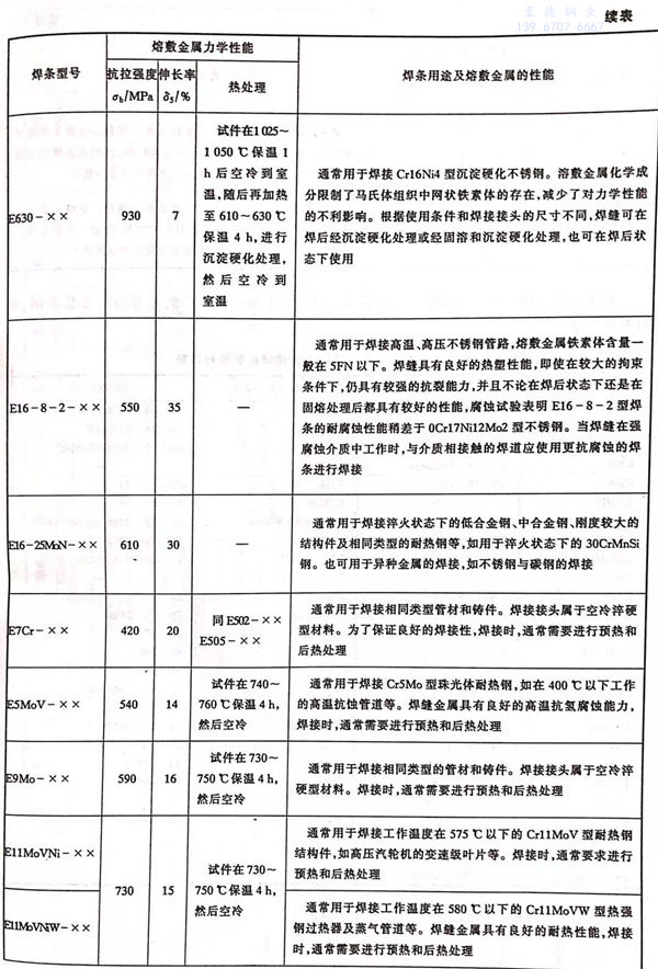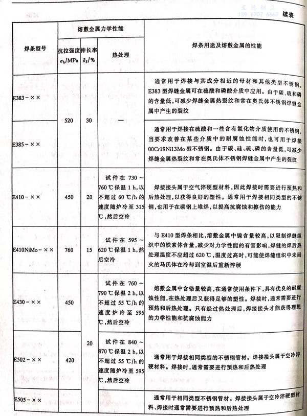 各型號(hao)不(bu)銹鋼焊條(tiao)的力學性能(neng)和主(zhu)要用途見表 5-5 。
