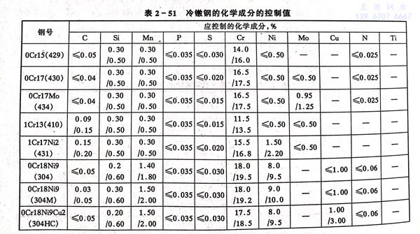 為了順利生(sheng)產冷(leng)鐓螺栓對各(ge)類不銹鋼的化學成分予(yu)以嚴格(ge)控(kong)制,一些常用牌(pai)號通常按(an)表2-51規定進行執行。