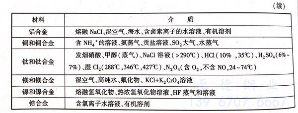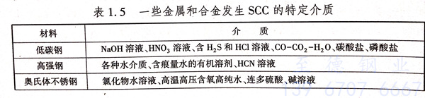 只有(you)(you)在特定的(de)腐(fu)(fu)蝕介(jie)(jie)質(zhi)中含有(you)(you)某些(xie)對發生(sheng)應(ying)力腐(fu)(fu)蝕有(you)(you)特效作用的(de)離子、分子時才會發生(sheng)應(ying)力腐(fu)(fu)蝕。這種(zhong)特定的(de)腐(fu)(fu)蝕劑并(bing)不一定要大量存在,而且往往濃度很(hen)低。表1.5列出(chu)了一些(xie)金(jin)屬和合金(jin)發生(sheng)應(ying)力腐(fu)(fu)蝕的(de)特定介(jie)(jie)質(zhi)。