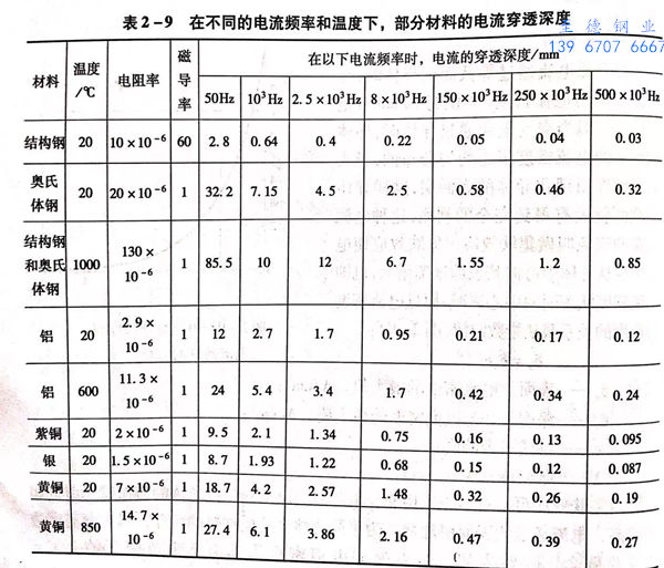 表(biao)2-9為在(zai)不同(tong)的電流頻率和溫度下,部(bu)分材料的電流穿透深度。