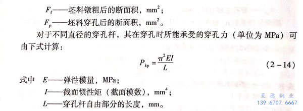 在預鉆孔坯料直接擴孔時,擴孔力可以按照實心坯料穿孔的公式計算,取低于其25%~30%的穿孔力。坯料在鐓粗和穿孔過程中,其長度發生兩次變化,鐓粗后坯料被壓縮變短,其期向減小的體積等于徑向增加的體積。穿孔之后,坯料長度變長,軸向增長的體積等于穿孔頭所穿出的整個內孔的體積。制定工藝制度時,可按下式確定鐓粗坯料的長度和穿孔后坯料的長度:Lp: