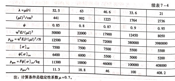 當縱向壓力p等于Pkp時,可能產生縱向彎曲,此彎曲在進一步稍增加壓力時,可導致工具的破壞。因此,Pkp可看作破壞力。在穩定條件下所允許的負荷由下式確定: