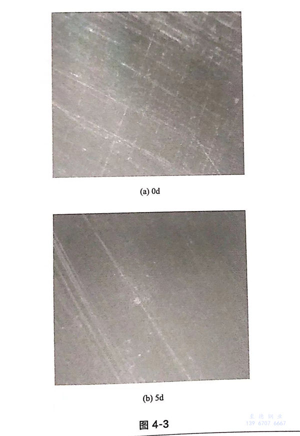 為(wei)(wei)了解不同時(shi)間(jian)(jian)點(dian)(dian)蝕(shi)(shi)萌生數量,采用浸泡法研(yan)究點(dian)(dian)蝕(shi)(shi)的(de)萌生率,為(wei)(wei)縮短試(shi)驗(yan)周期(qi),使用FeCl。溶液作為(wei)(wei)腐(fu)蝕(shi)(shi)液。試(shi)驗(yan)用材、試(shi)樣(yang)尺寸、封裝方(fang)式同4.1.3節,試(shi)樣(yang)打(da)磨(mo)后(hou)放入(ru)6%FeCl3溶液中浸泡。經(jing)過(guo)一(yi)定時(shi)間(jian)(jian)的(de)腐(fu)蝕(shi)(shi)后(hou),把試(shi)樣(yang)取出,經(jing)清洗和烘干,在低倍鏡下測量單位(wei)面(mian)積上的(de)點(dian)(dian)蝕(shi)(shi)坑(keng)數目。點(dian)(dian)蝕(shi)(shi)密度隨浸泡時(shi)間(jian)(jian)的(de)變(bian)化趨(qu)(qu)勢如圖4-5所(suo)示。從圖4-5可看出,點(dian)(dian)蝕(shi)(shi)產生的(de)初(chu)始階段,點(dian)(dian)蝕(shi)(shi)萌生率很(hen)大,經(jing)過(guo)一(yi)段時(shi)間(jian)(jian)后(hou)逐(zhu)漸減小,并趨(qu)(qu)于平穩(wen)。由于點(dian)(dian)蝕(shi)(shi)的(de)產生與材料(liao)表(biao)面(mian)的(de)MnS夾雜(za)(za)有(you)關(guan),MnS夾雜(za)(za)部位(wei)點(dian)(dian)蝕(shi)(shi)的(de)孕育時(shi)間(jian)(jian)基(ji)本相同,點(dian)(dian)蝕(shi)(shi)萌生時(shi)間(jian)(jian)比(bi)較集中。