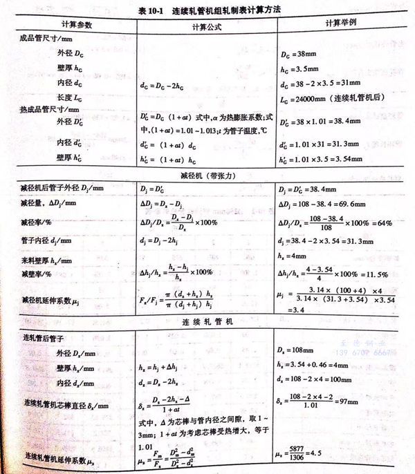 軋制(zhi)表(biao)中規定(ding)了每種管(guan)材(cai)所必(bi)須的(de)(de)一(yi)切數(shu)據(ju),計(ji)算(suan)步(bu)驟如下:1. 根據(ju)已知成品管(guan)外徑、壁厚、內徑和長度(du)確定(ding)成品管(guan)的(de)(de)熱尺(chi)(chi)寸(cun);2. 計(ji)算(suan)定(ding)徑、減(jian)徑或張力減(jian)徑的(de)(de)變形量和軋后的(de)(de)鋼管(guan)尺(chi)(chi)寸(cun);3. 計(ji)算(suan)軋管(guan)機的(de)(de)變形量、鋼管(guan)尺(chi)(chi)寸(cun)和工具(ju)尺(chi)(chi)寸(cun);4. 計(ji)算(suan)穿孔(kong)機的(de)(de)變形量、毛管(guan)尺(chi)(chi)寸(cun)、工具(ju)尺(chi)(chi)寸(cun)和調整參數(shu);5. 選定(ding)管(guan)坯(pi)尺(chi)(chi)寸(cun)。
