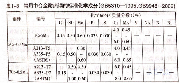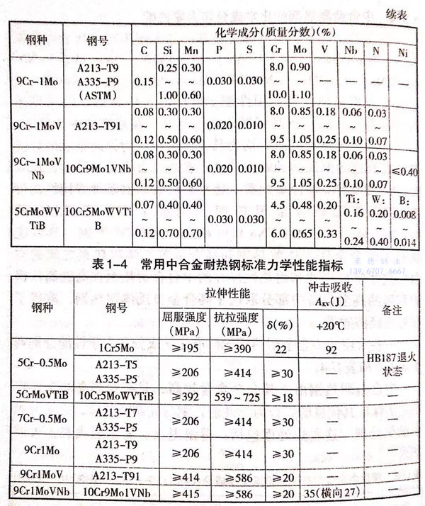 一些常用(yong)的中合金(jin)耐熱鋼的標準化學(xue)成分和(he)力學(xue)性能分別列于表1-3和(he)表1-4。