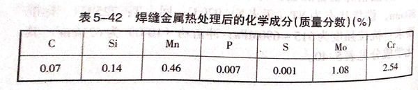 正火(huo)出(chu)爐后的(de)加(jia)速(su)冷卻(que)應采(cai)取具體的(de)工藝措施(shi),以保證一定的(de)冷卻(que)速(su)度。焊接(jie)接(jie)頭(tou)經熱處理(li)后的(de)化學(xue)成(cheng)分見表5-42,力(li)學(xue)性能見表5-43.