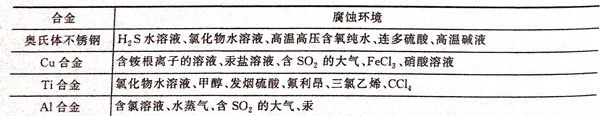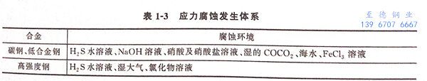 應(ying)力腐(fu)(fu)蝕斷裂是金(jin)屬在(zai)應(ying)力和環(huan)境(jing)共(gong)同作用下(xia)發(fa)生(sheng)的(de)(de)(de)(de)破壞(huai),并不(bu)(bu)是所有的(de)(de)(de)(de)金(jin)屬都會發(fa)生(sheng)應(ying)力腐(fu)(fu)蝕,不(bu)(bu)同的(de)(de)(de)(de)金(jin)屬發(fa)生(sheng)應(ying)力腐(fu)(fu)蝕的(de)(de)(de)(de)環(huan)境(jing)是不(bu)(bu)一樣的(de)(de)(de)(de),表1-3列出(chu)了目前發(fa)現的(de)(de)(de)(de)應(ying)力腐(fu)(fu)蝕合金(jin)+環(huan)境(jing)體(ti)系(xi)。從表1-3可(ke)以看出(chu),奧氏體(ti)不(bu)(bu)銹鋼發(fa)生(sheng)應(ying)力腐(fu)(fu)蝕的(de)(de)(de)(de)環(huan)境(jing)較(jiao)廣,在(zai)高溫(wen)環(huan)境(jing)中(zhong)的(de)(de)(de)(de)水蒸氣、濕潤空氣等環(huan)境(jing)中(zhong)都可(ke)能發(fa)生(sheng)。