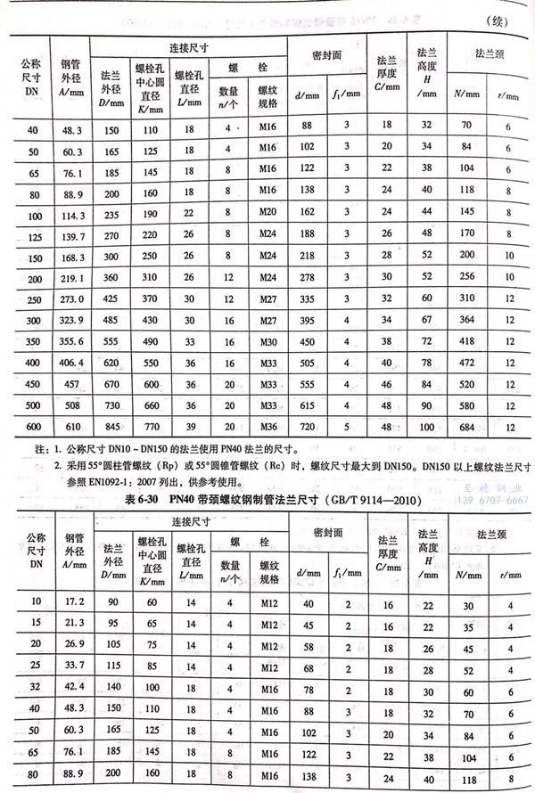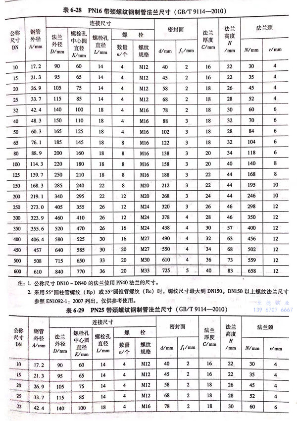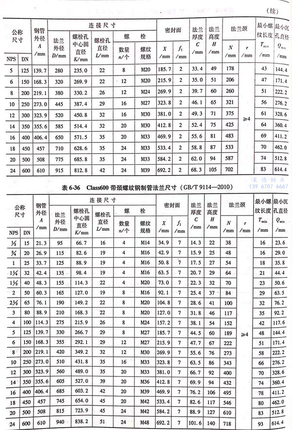 3. 采(cai)用(yong)55°管螺(luo)紋時,DN150法(fa)(fa)蘭配用(yong)的鋼管外徑應為165.1mm.采(cai)用(yong)60°圓錐(zhui)管螺(luo)紋時,DN65法(fa)(fa)蘭配用(yong)鋼管外徑應為73mm;DN125法(fa)(fa)蘭配用(yong)的鋼管外徑應為141.3mm。