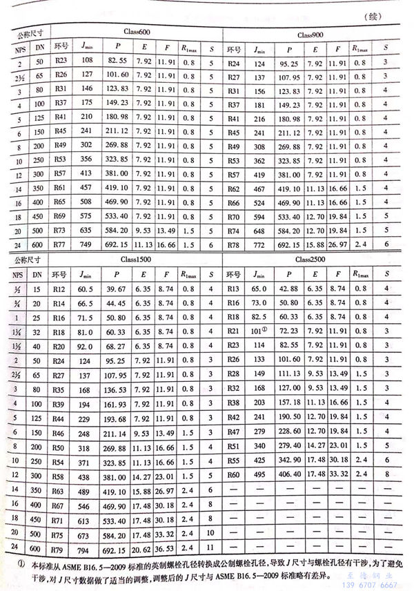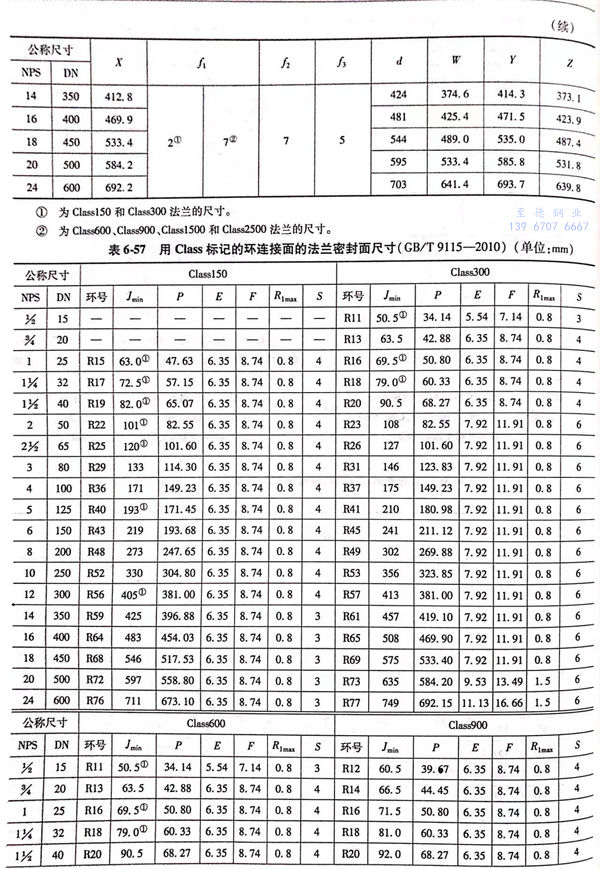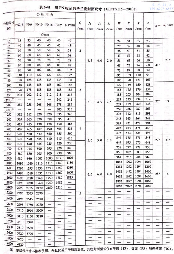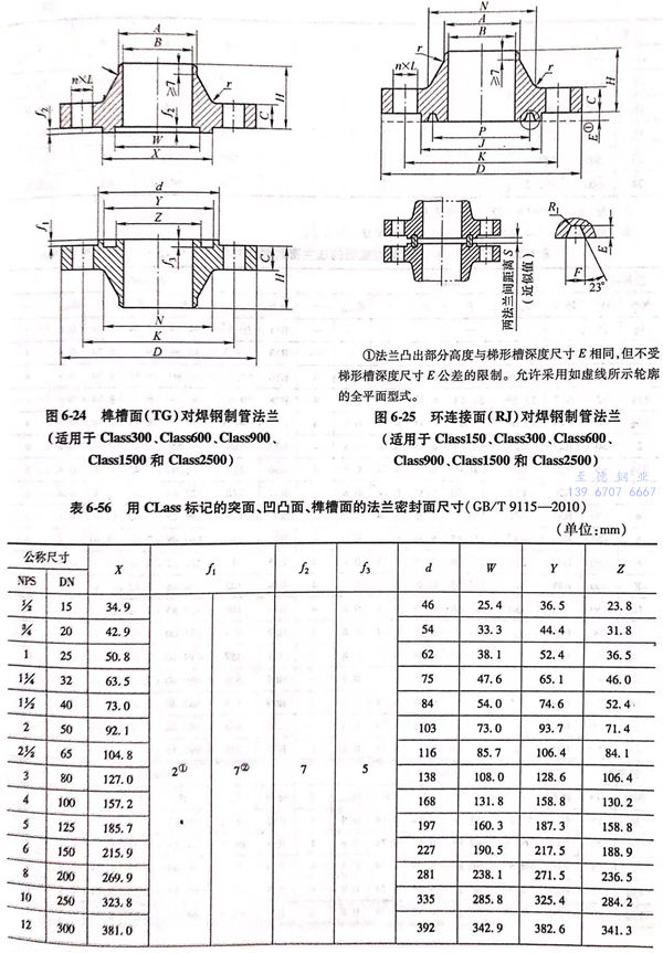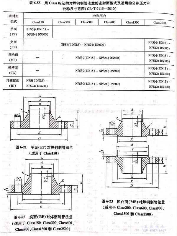 用Class標記的(de)(de)對焊鋼制(zhi)管法(fa)蘭(lan)(lan)(lan)的(de)(de)密封(feng)面型式(shi)及適用的(de)(de)公稱(cheng)壓(ya)力和公稱(cheng)尺(chi)寸范圍見表6-55;用Class標記的(de)(de)對焊鋼制(zhi)管法(fa)蘭(lan)(lan)(lan)的(de)(de)型式(shi)如圖6-21~圖6-25所示,法(fa)蘭(lan)(lan)(lan)密封(feng)面尺(chi)寸見表6-56和表6-57,法(fa)蘭(lan)(lan)(lan)結(jie)構尺(chi)寸見表6-58~表6-63。