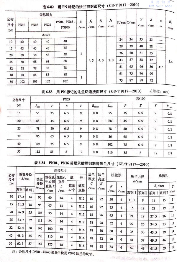 用PN標(biao)記的帶頸(jing)承(cheng)插焊鋼制(zhi)管法(fa)蘭(lan)的密封面型式及適用的公(gong)(gong)稱(cheng)壓力和公(gong)(gong)稱(cheng)尺寸(cun)范圍(wei)見(jian)表(biao)(biao)6-81;用PN標(biao)記的帶頸(jing)承(cheng)插焊鋼制(zhi)管法(fa)蘭(lan)型式如圖(tu)6-36~圖(tu)6-41所(suo)示,法(fa)蘭(lan)密封面尺寸(cun)見(jian)表(biao)(biao)6-82、表(biao)(biao)6-83,法(fa)蘭(lan)結構尺寸(cun)或尺寸(cun)見(jian)表(biao)(biao)6-84~表(biao)(biao)6-87。
