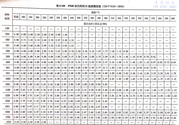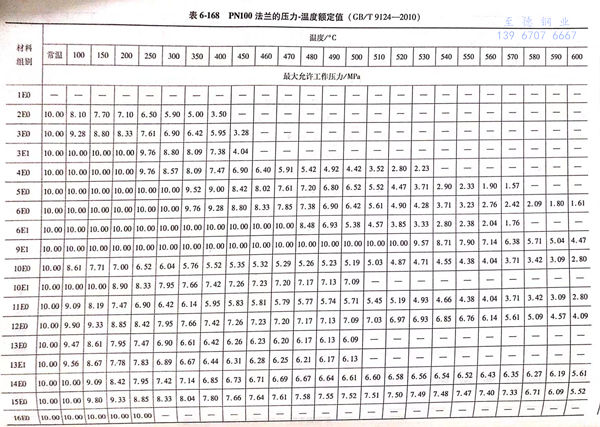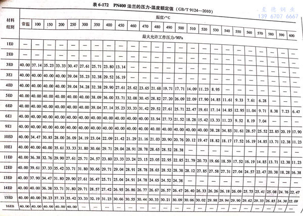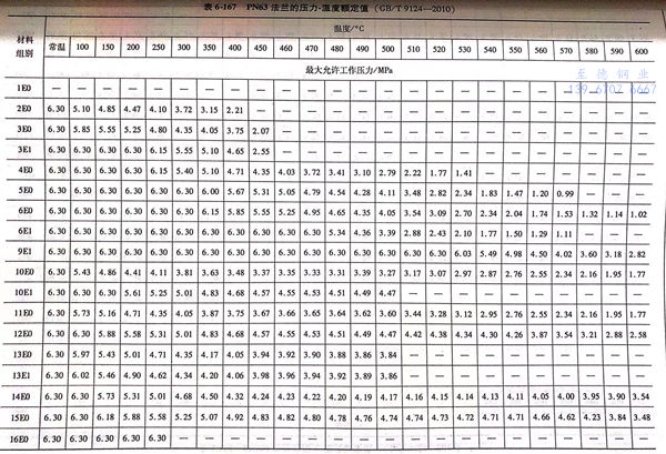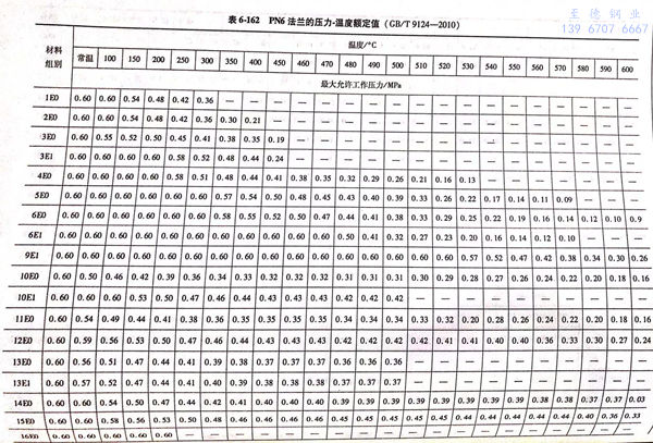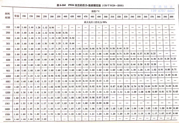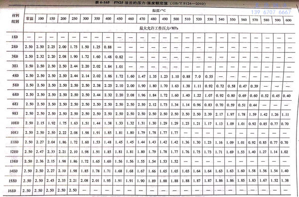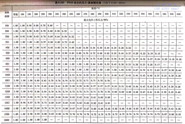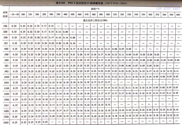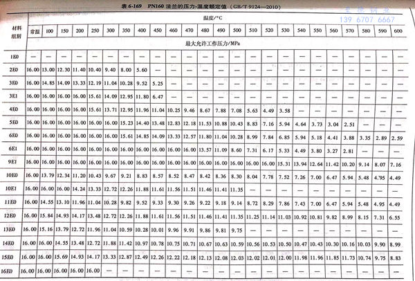 用PN標(biao)記的法蘭壓力-溫(wen)度額定值見表6-161~表6-172.