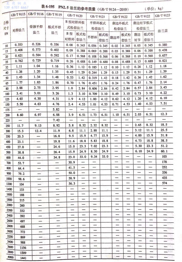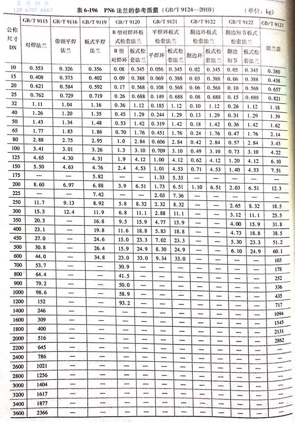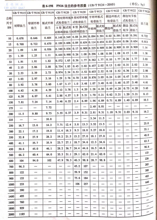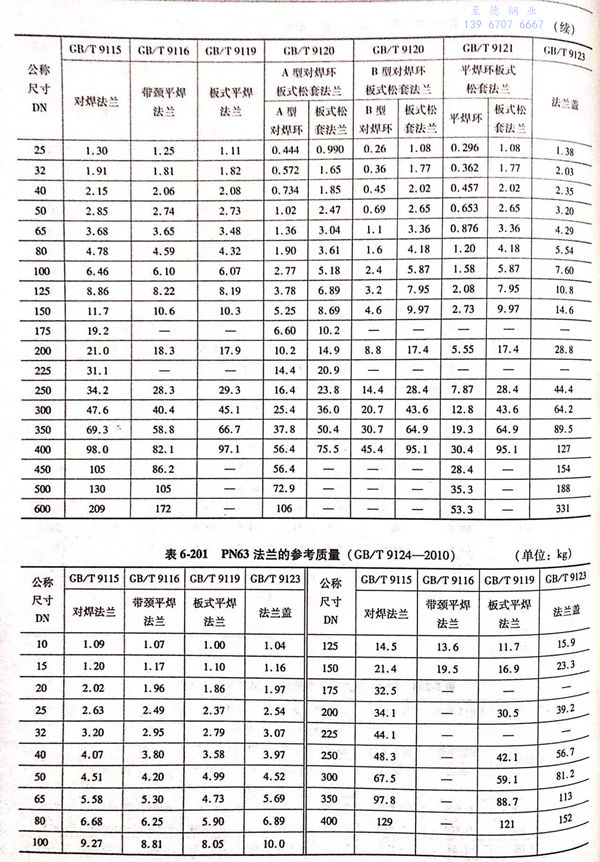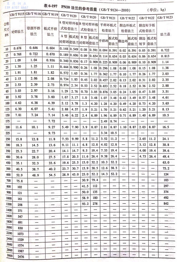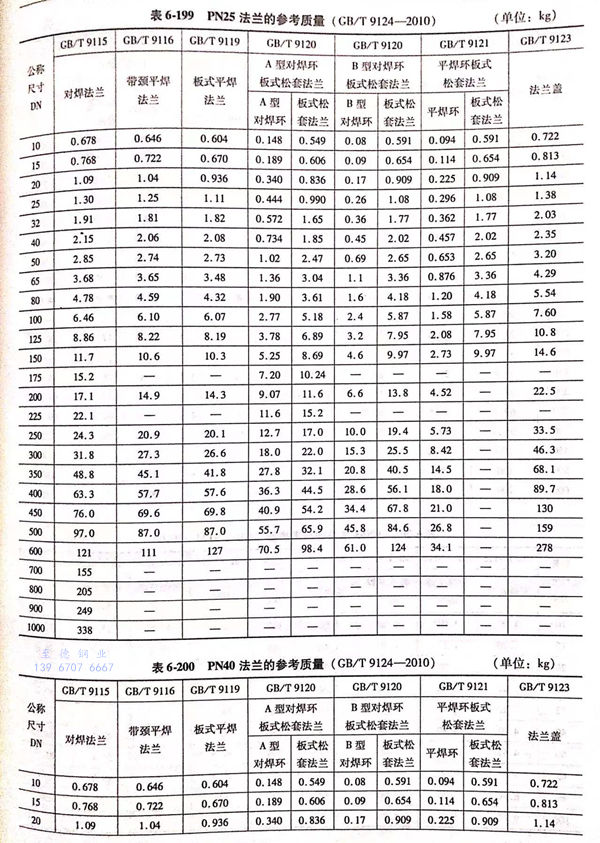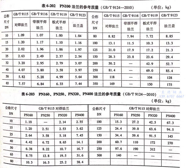 用PN標記的法蘭(包(bao)括(kuo)PN2.5~PN400共(gong)12個壓力級的法蘭)的參(can)考質量見表(biao)6-195~表(biao)6-203。