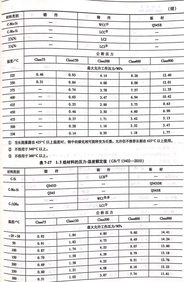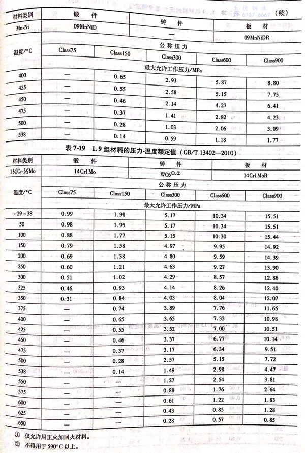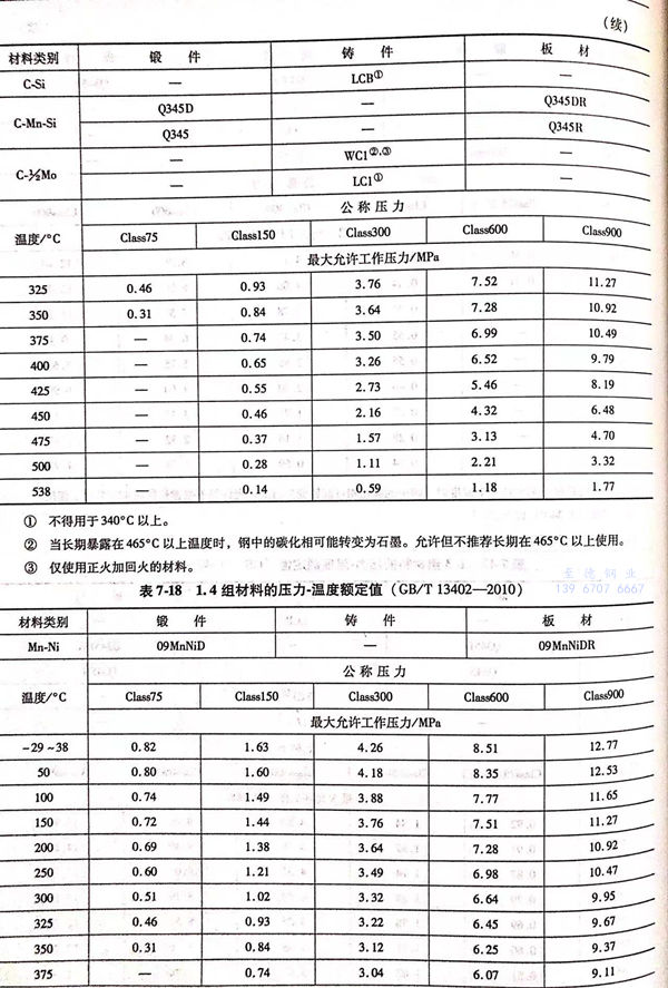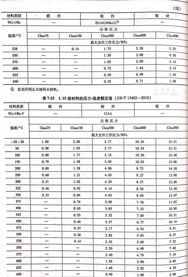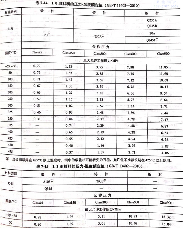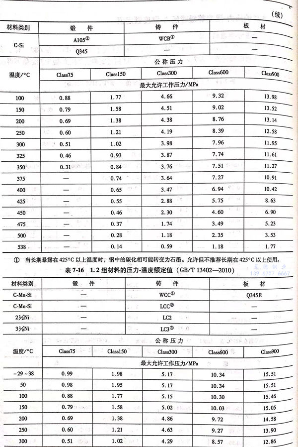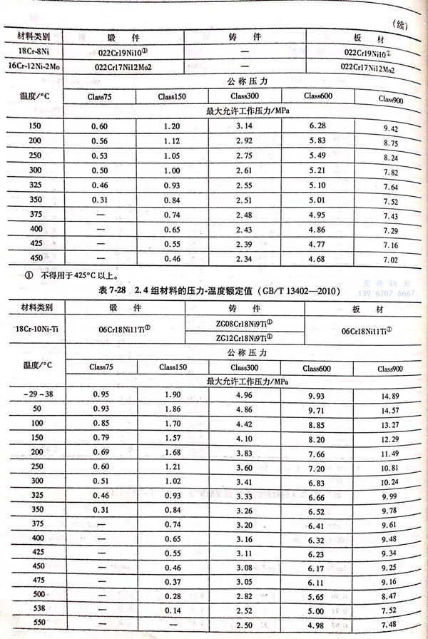 各組材料的不銹鋼法蘭(Class75~Class900)的壓力-溫度額定值見表7-14~表7-33。對于不銹鋼法(fa)蘭(lan)的壓力-溫度極限額定值見表7-34.表7-14~表7-33所規定的法蘭壓力-溫度額定值不得超過表7-34規定的極限額定值。