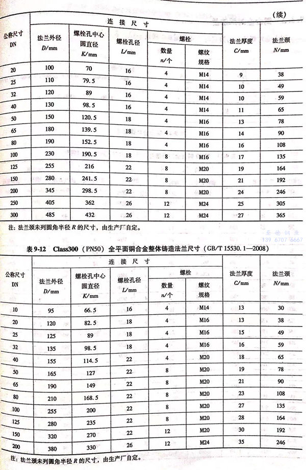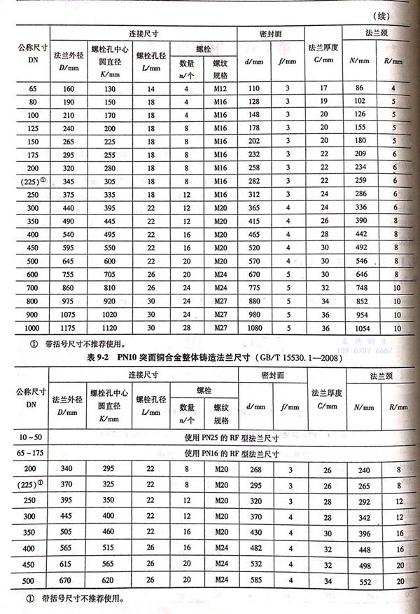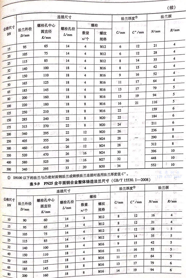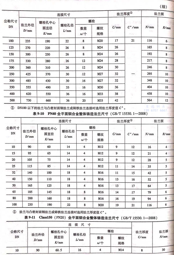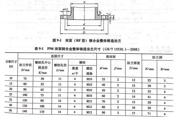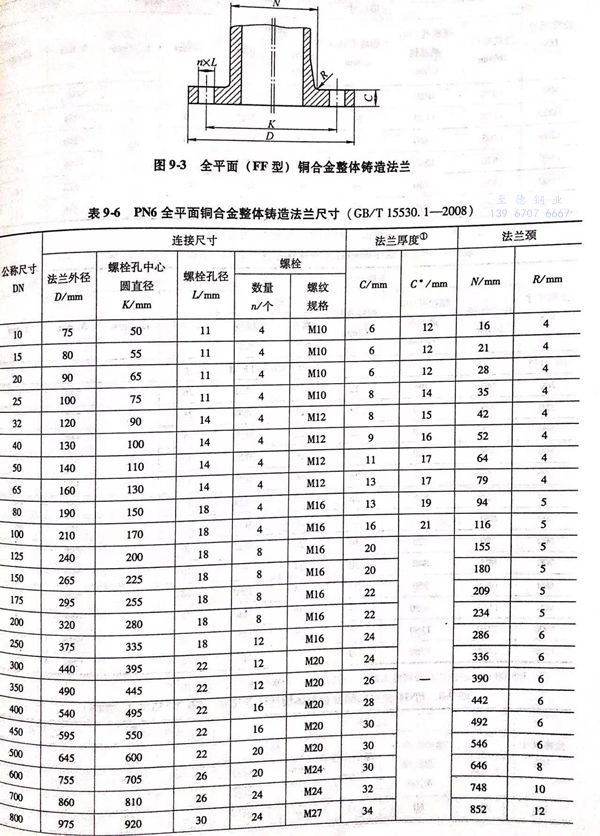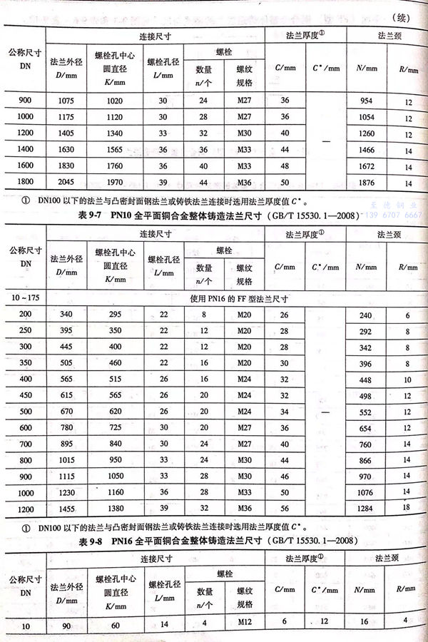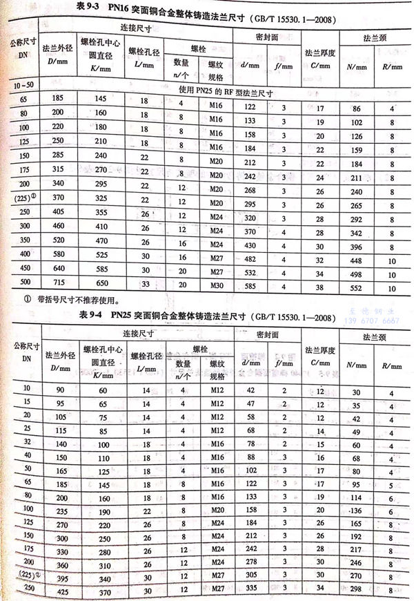 3. 全平面(FF型(xing))銅合(he)金整體鑄(zhu)造法(fa)蘭的型(xing)式與尺寸見圖(tu)9-3和表9-6~表9-12。
