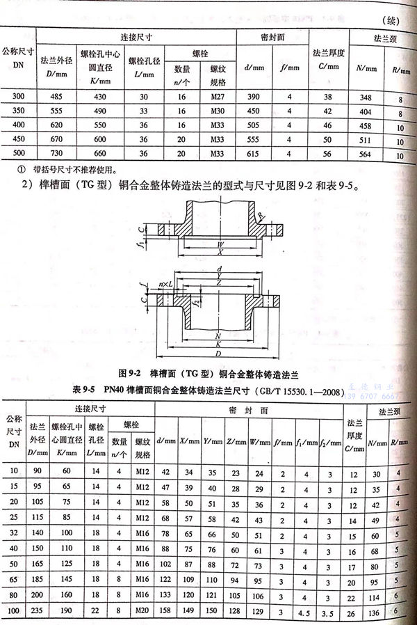 2. 榫槽(cao)面(TG型)銅合金整體(ti)鑄造法蘭的型式與(yu)尺寸見圖9-2和表(biao)9-5。