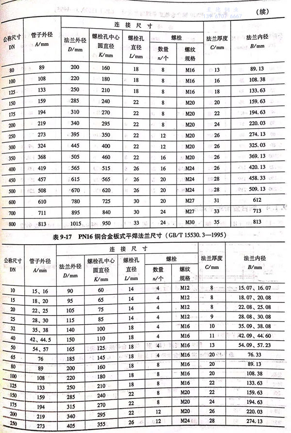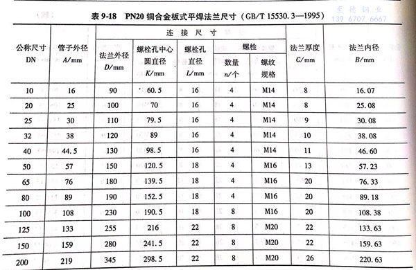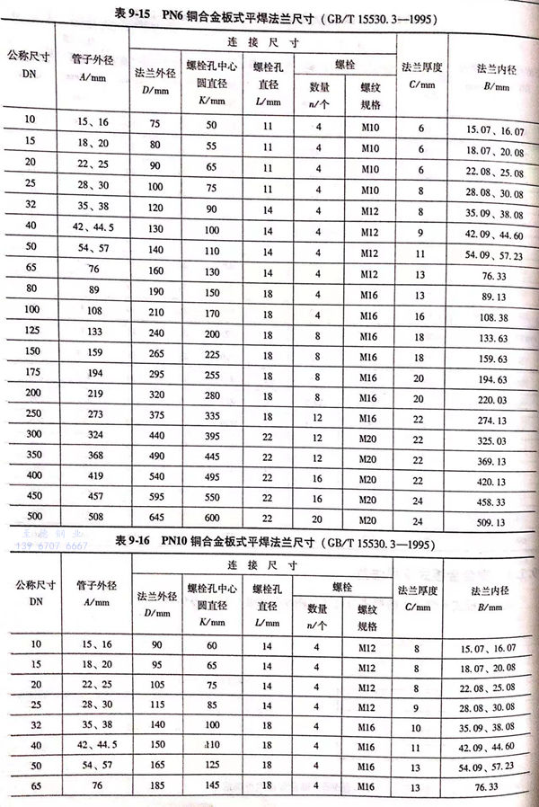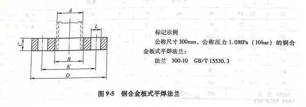 銅合金板式(shi)平焊法蘭的(de)型(xing)式(shi)與(yu)尺寸(cun)見(jian)圖 9-5 和(he) 表(biao) 9-15~表(biao) 9-18。