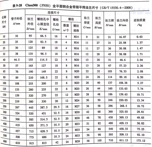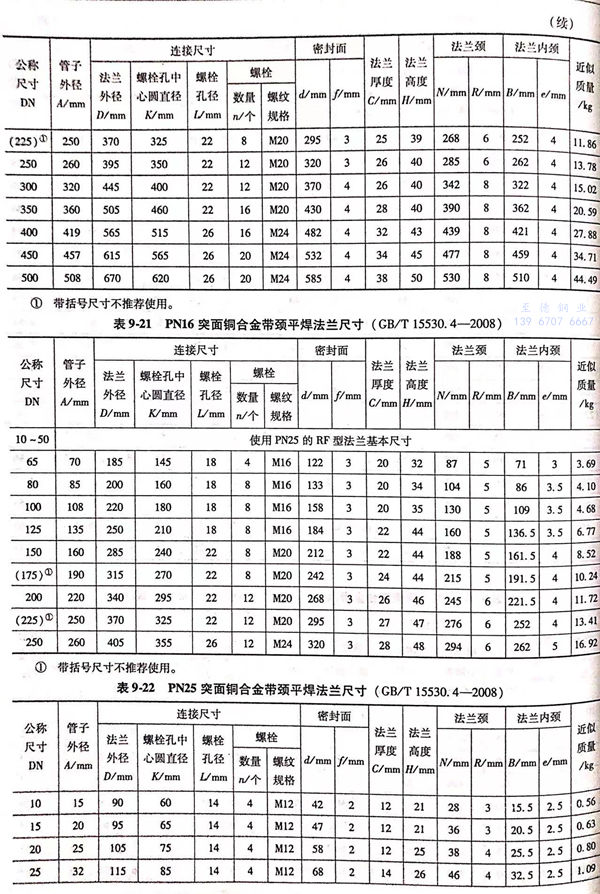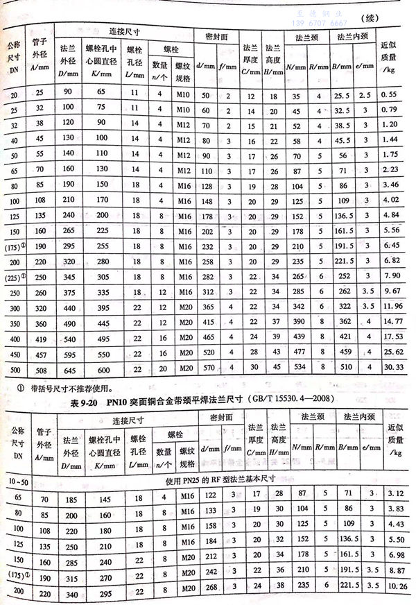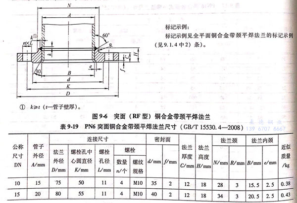 突面(RF)銅(tong)合金(jin)帶頸平焊法蘭的型式(shi)與尺寸(cun)見(jian)圖 9-6 和表 9-19~表9-22。