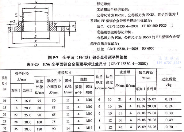 全(quan)平面(mian)(FF型)銅合金(jin)帶頸(jing)平焊法蘭的型式(shi)與(yu)尺寸見圖 9-7 和表(biao) 9-23~表(biao) 9-28。