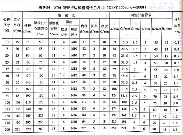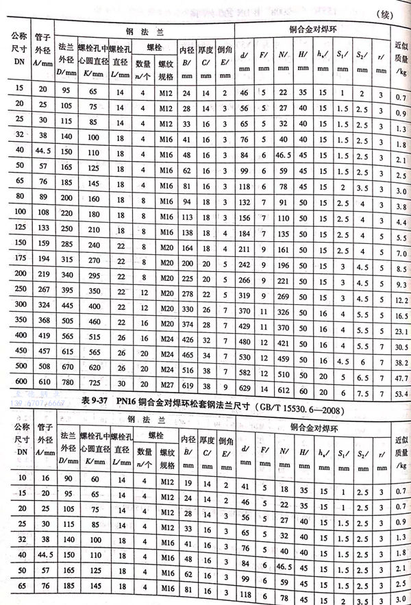 1. 銅管(guan)折邊松套鋼法蘭(A型)的型式(shi)與尺(chi)寸(cun)見圖9-9和表9-34.