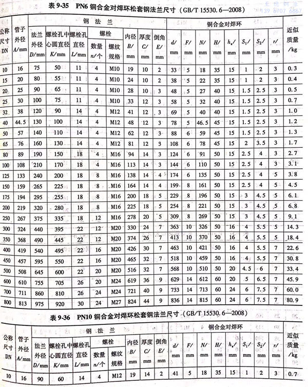 2. 銅(tong)合金對焊環松套(tao)鋼法蘭(B型)的(de)型式與尺寸見圖9-10和表9-35~表9-40.