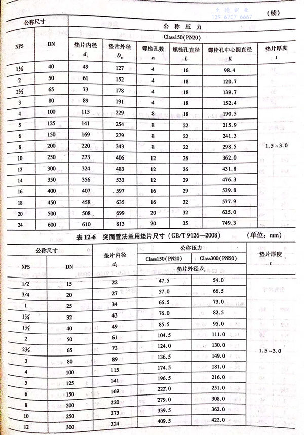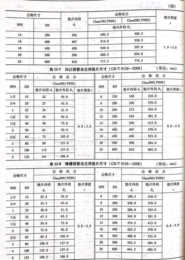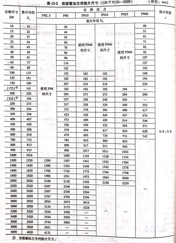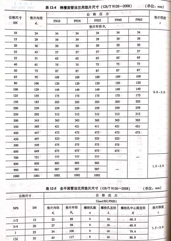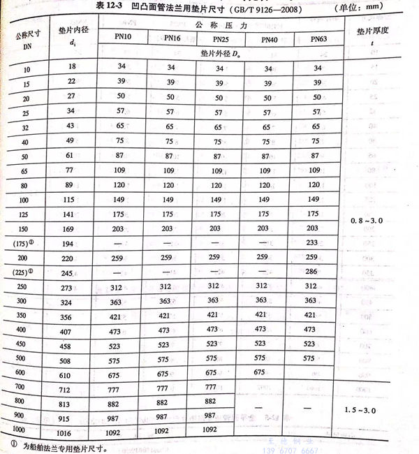 b. 突面管法蘭用墊片的型式如圖12-3所示(shi),尺寸見表12-6.