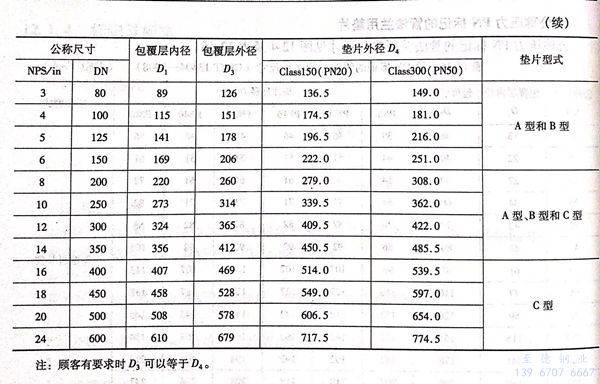 3. 公稱壓力 Class 標記的管(guan)法蘭(lan)用墊片