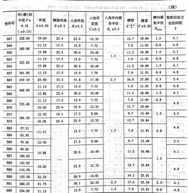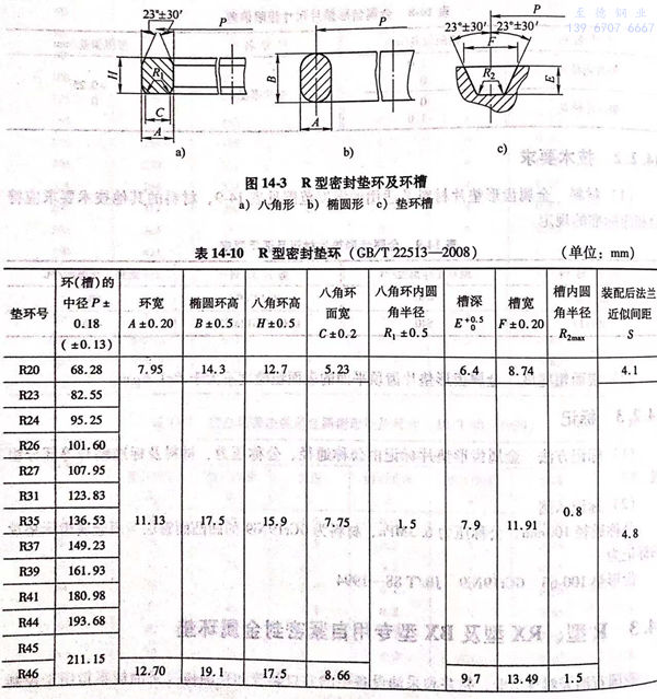 R型密(mi)封墊環(huan)及(ji)環(huan)槽如圖14-3所示,尺寸見表14-10.