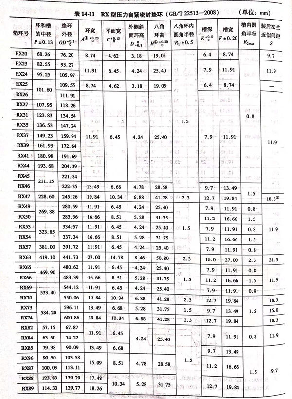 RX 型壓力自封墊(dian)環及環槽(cao)見圖 14-4 ,尺寸(cun)見表 14-11。