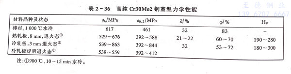 高純(chun)Cr30Mo2、008Cr30Mo2、447J1不銹鋼(gang)的化學成分表(biao)2-35。