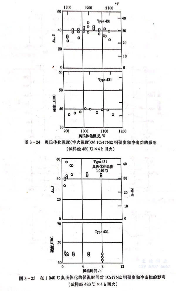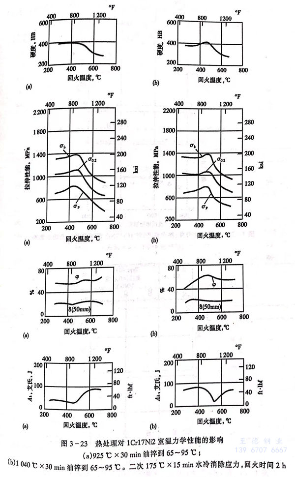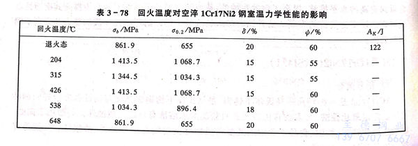1Cr17Ni2、14Cr17Ni2、431 不銹(xiu)鋼的(de)室溫力(li)學性(xing)能(neng)可(ke)通過熱(re)處理(li)工藝予以調(diao)整,熱(re)處理(li)工藝條(tiao)件(jian)與室溫力(li)學性(xing)能(neng)的(de)影響見表3-78和圖3-23至圖3-25。