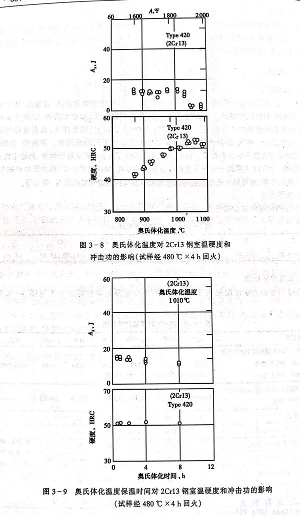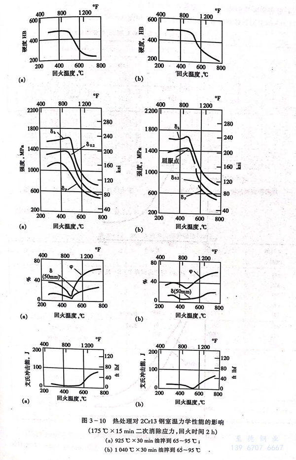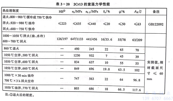 2Cr13、20Cr13、420 不(bu)銹鋼的(de)室(shi)溫(wen)力學性(xing)能(neng)見(jian)表3-20。熱處理與室(shi)溫(wen)力學性(xing)能(neng)的(de)關系(xi)見(jian)圖(tu)3-8至圖(tu)3-10。