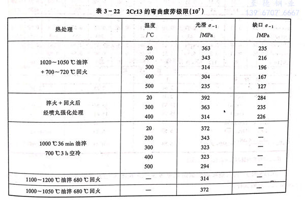 2Cr13、20Cr13、420 不銹鋼的(de)室(shi)溫(wen)旋(xuan)轉(zhuan)彎曲疲勞性(xing)能見表3-21和(he)(he)圖3-11和(he)(he)圖3-12。