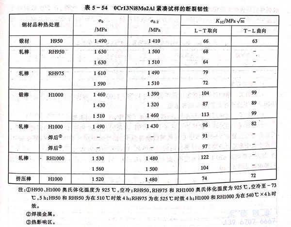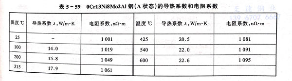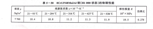 04Cr13Ni8Mo2Al、0Cr13Ni8Mo2Al、PH13-8Mo 不銹鋼的(de)物理性能(neng)見(jian)表(biao)5-58和(he)表(biao)5-59。