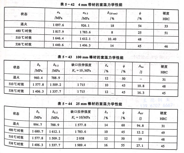 022Cr12Ni9Cu2NbTi、00Cr12Ni8Cu2TiNb、Custom 455 不銹鋼的室溫力學性能見表5-42至表5-46。