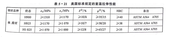 不同熱處理狀態的(de)0Cr15Ni5Cu3Nb、15-5PH 不銹鋼的(de)高溫瞬時拉伸性能見(jian)表5-29。