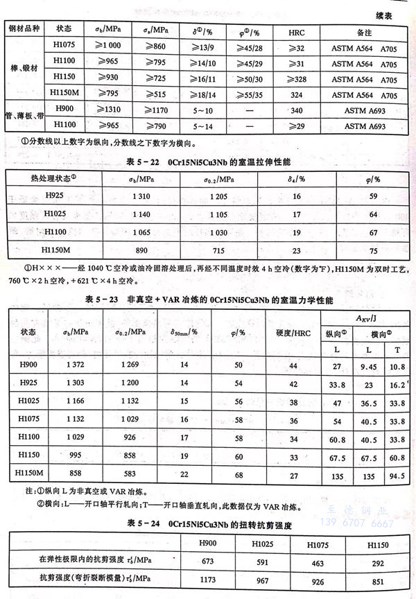 0Cr15Ni5Cu3Nb、15-5PH 不銹鋼的熱處理規范見表(biao)5-30。