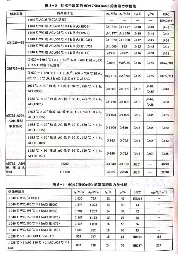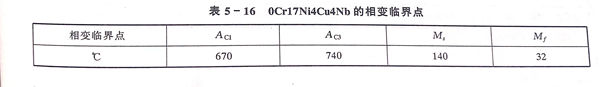 0Cr17Ni4Cu4Nb、05Cr17Ni4Cu4Nb、17-4PH 不銹鋼的(de)相變臨界點列于表5-16。熱處理制度見表5-17。