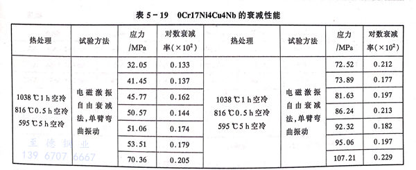 0Cr17Ni4Cu4Nb、05Cr17Ni4Cu4Nb、17-4PH 不銹鋼的物理性能見表 5-18 。衰(shuai)減性能見表 5-19 。