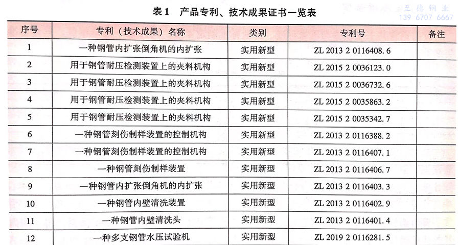 青山(shan)鋼管2008年組建了自(zi)己的研(yan)究(jiu)開發中(zhong)心(xin)(xin),被評為浙江省高(gao)(gao)新技(ji)術(shu)企(qi)業研(yan)究(jiu)開發中(zhong)心(xin)(xin),國家級(ji)實(shi)驗室(shi)CNAS認證的實(shi)驗室(shi),占地面積(ji)450平(ping)(ping)方米,三層(ceng)共1350平(ping)(ping)方米;實(shi)驗室(shi)通過(guo)了中(zhong)國合(he)格評定國家認可(ke)委員會CNAS認證,具備國內、國際(ji)標準檢(jian)(jian)測能(neng)力,擁有(you)高(gao)(gao)級(ji)工程師5人(ren),技(ji)術(shu)人(ren)員12人(ren)的專(zhuan)業技(ji)術(shu)團(tuan)隊,可(ke)以進行(xing)常規(gui)物理性能(neng)檢(jian)(jian)測、化學分(fen)析檢(jian)(jian)測、金(jin)相分(fen)析、晶間腐蝕、高(gao)(gao)低溫沖(chong)擊試驗等。榮(rong)獲過(guo)2項(xiang)(xiang)浙江省科技(ji)技(ji)術(shu)成果(guo),擁有(you)自(zi)主產權(quan)專(zhuan)利技(ji)術(shu)包括發明專(zhuan)利5項(xiang)(xiang),實(shi)用新型(xing)(xing)36項(xiang)(xiang),已在申請中(zhong)發明專(zhuan)利4項(xiang)(xiang),實(shi)用新型(xing)(xing)6項(xiang)(xiang),具體(ti)情況見表(biao)1。