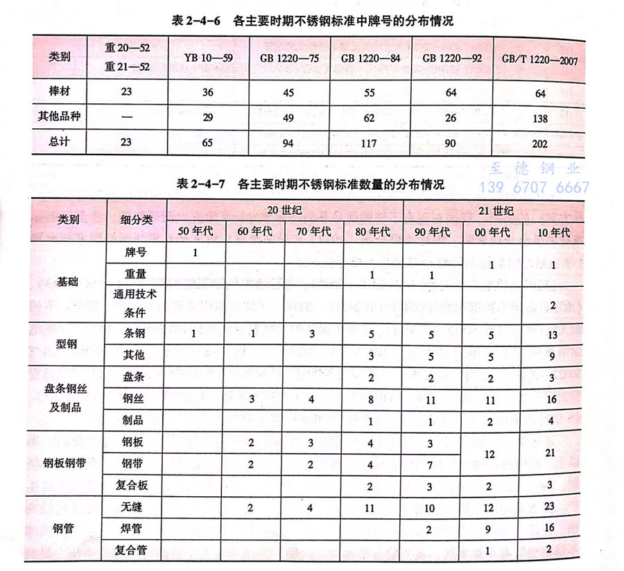 綜上所(suo)述,我國(guo)不銹(xiu)鋼(gang)標準(zhun)經歷(li)了(le)起步(bu)(bu)、調整、發展(zhan)和改革(ge)等四(si)個(ge)階(jie)段,使我國(guo)不銹(xiu)鋼(gang)標準(zhun)牌號(見表2-4-6)、數量(見表2-4-7)、標準(zhun)水平和國(guo)際通用性都有長足的(de)進步(bu)(bu)和發展(zhan),體現(xian)了(le)我國(guo)不銹(xiu)鋼(gang)標準(zhun)由生(sheng)產型向(xiang)貿易型的(de)轉(zhuan)變,深(shen)刻展(zhan)現(xian)了(le)我國(guo)計劃經濟向(xiang)市場經濟的(de)轉(zhuan)變。