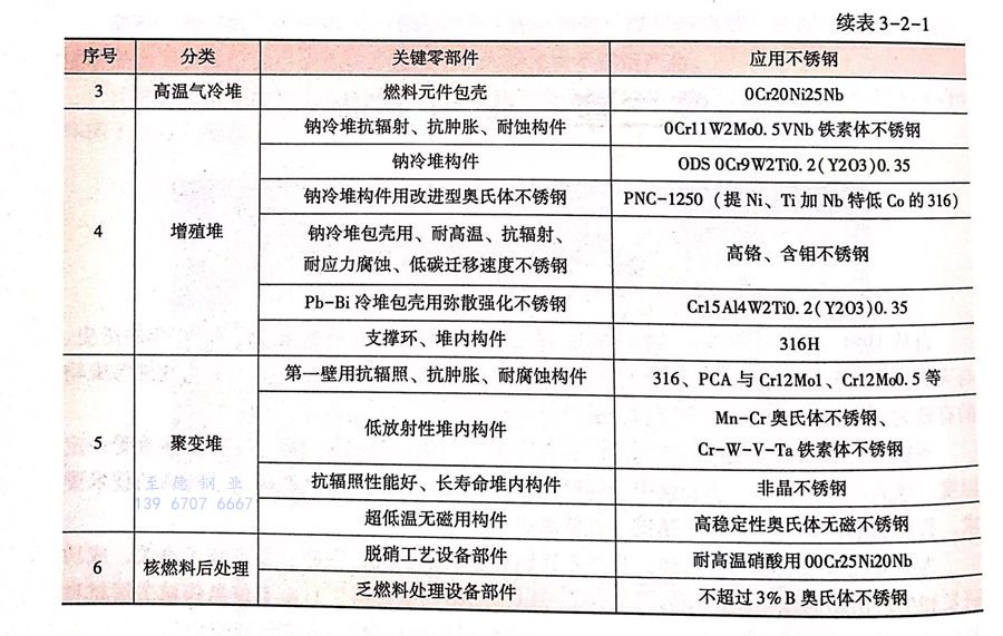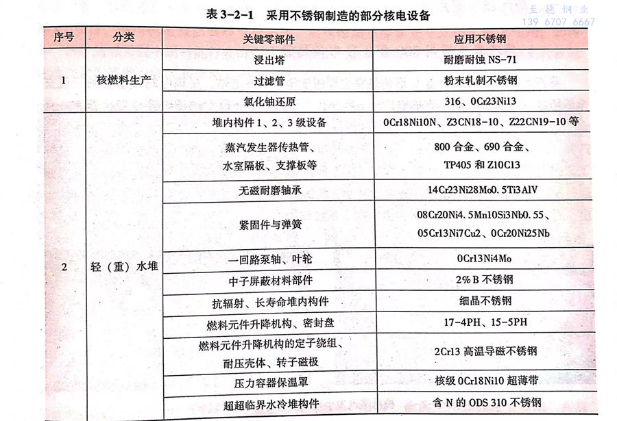 不銹鋼管(guan)是用于核電設備制造的關鍵材料之一(見表3-2-1),要求材料能夠承受一定溫度、較高壓力、腐蝕介質和強中子輻照,這些都對不銹鋼管產品性能提出了特殊的技術要求。長期以來,我國核電用不銹鋼管一直依靠進口。